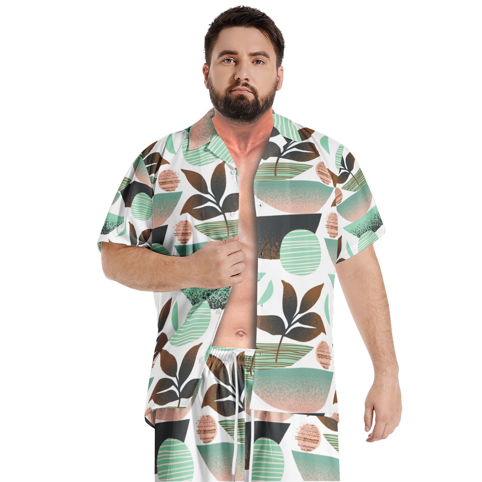 Stylish Design: The men hawaiian shirt sets designed with minimalist design style, classic regular fit, button down and drawstring closure.